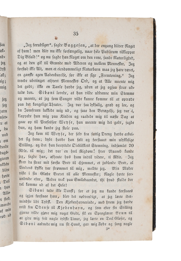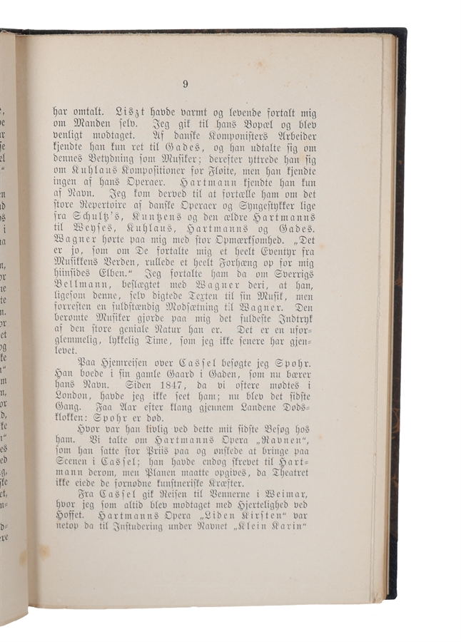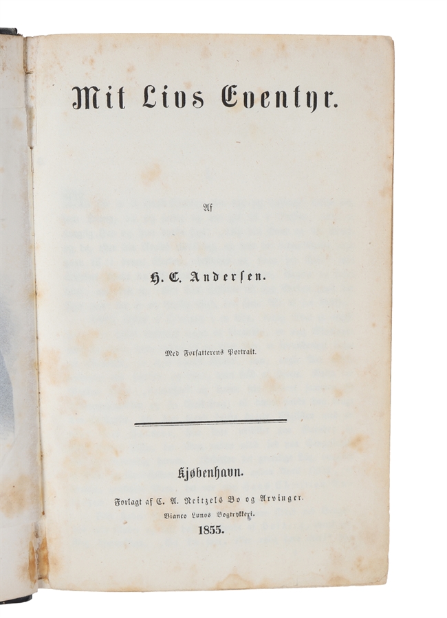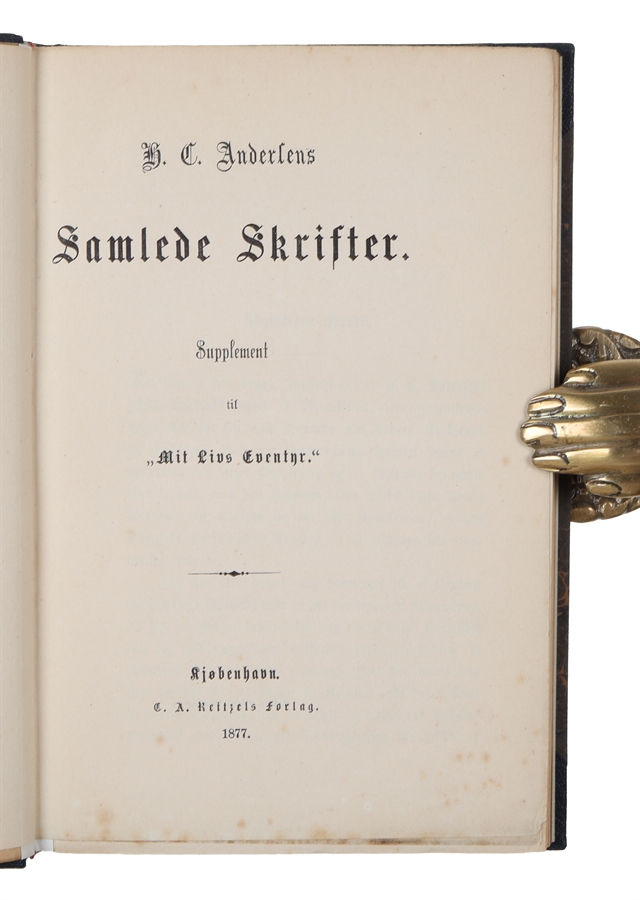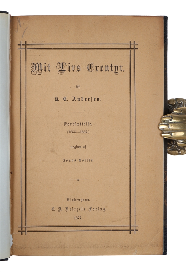 + Mit Livs Eventyr. Fortsættelse (1855 - 1867). K., 1877. Bd. 1 i smukt samt. hldrbd. m. rig rygforgyldn. Bd. 2 indb. ubeskåret m. orig. for- og bagomsl. samt omsl.s ryg i nydeligt nyere hldrbd. af blå-grå maroquin. Med litograferet Portræt. Her og der lidt brunplettet.