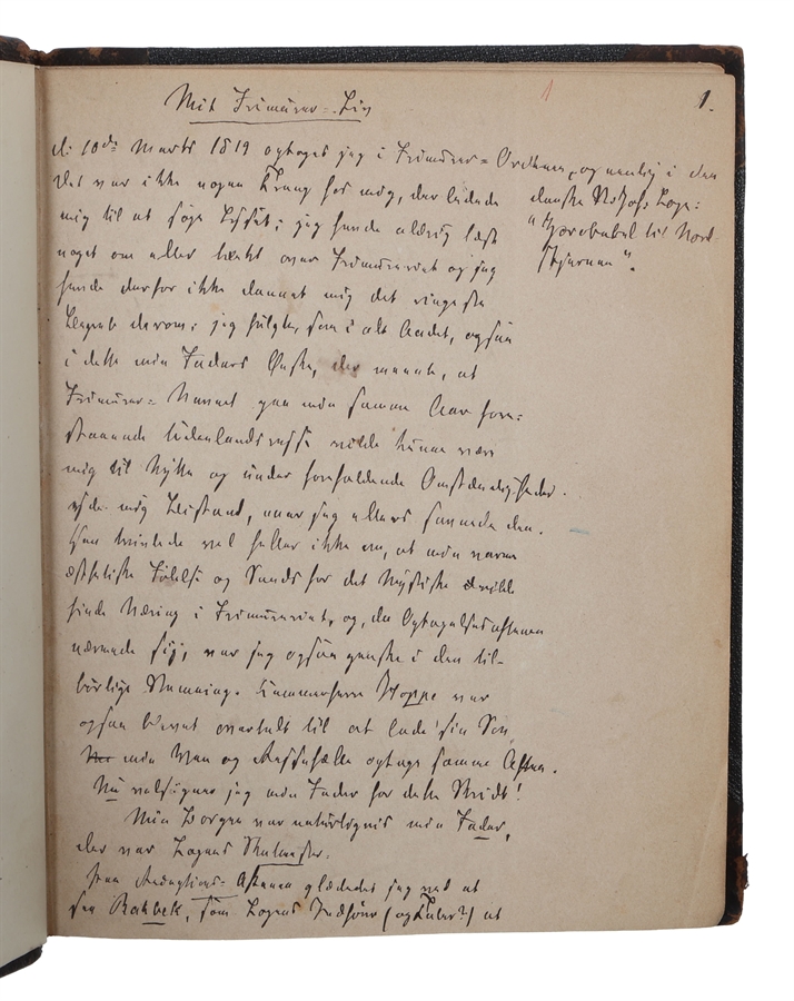 Unpublished autograph manuscript in Danish comprising a detailed autobiographical account of the author’s life within Freemasonry, beginning with his initiation in 1819. Written in Danish, the text records lodge experiences, relations with fellow lodge-brothers and the moral and spiritual development he experienced with the Order.
