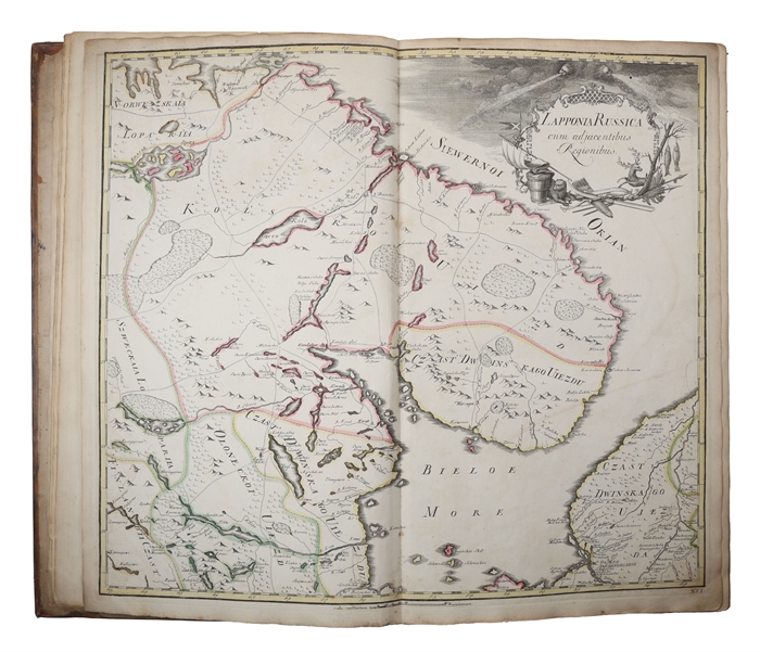 First edition, handcoloured and with an interesting provenance, of the first printed atlas of Russia, one of the great cartographic monuments of the eighteenth century and a cornerstone in the scientific mapping of the Russian Empire. 'As the most complete representation of Russia to date, the atlas gave the European public a knowledge of the vastness and complexity of the Russian Empire' (Whittaker). “From 1719, all Russian cartography came under the first Russian director of the Cartographic Office, Ivan Kirilov. At his urgent representation, Joseph Nicolas Delisle, brother of the famous French astronomer and cartographer Guillaume Delisle, was invited to Russia. Kirilov and Delisle held diametrically opposed views on the expeditious construction of maps: Delisle was of the opinion that no surveying should be undertaken until a detailed network of astronomically determined points had been established, while Kirilov held that surveying could proceed from river and other geographical features as points of reference, with the survey subsequently adjusted to the astronomically determined points. Kirilov realised that Delisle’s methods could never produce a map of Russia in a short space of time, and decided to make a start on an atlas of Russia on his own account and using his own methods, but relying on Delisle for expert advice. Bering’s first voyage had not been very successful, and in 1732, four years after his return, it was decided to equip a second expedition, known as “the Great Northern Expedition”. It was to consist of several parties working simultaneously from Yugorski Shar in the west along the coast of the Arctic Ocean as far as Sakhalin in the east; and this titanic labour was completed in ten years. At this time, the Academy of Sciences wanted to get the atlas published, but Delisle, who kept putting forward new production methods and principles, was unwilling to allow the maps to be given their final form. Accordingly, while Delisle was away making astronomical observations, Schumacker, one of the directors of the Academy, took advantage of his absence and rushed the atlas off the stocks. It was completed in 1745. Delisle agreed to submit the completed atlas to the Academy, and thus gave his name to it, though by rights it should not bear his name. It consisted of a general map and 19 maps of smaller parts of the country, covering the whole of Russia. Delisle’s contemporaries thought very highly of it, and the famous German scholar Euler held it up as a model to a Germany as yet without a complete atlas of her own.” (Bagrow, History of Cartography, p. 175). Phillips 3109.