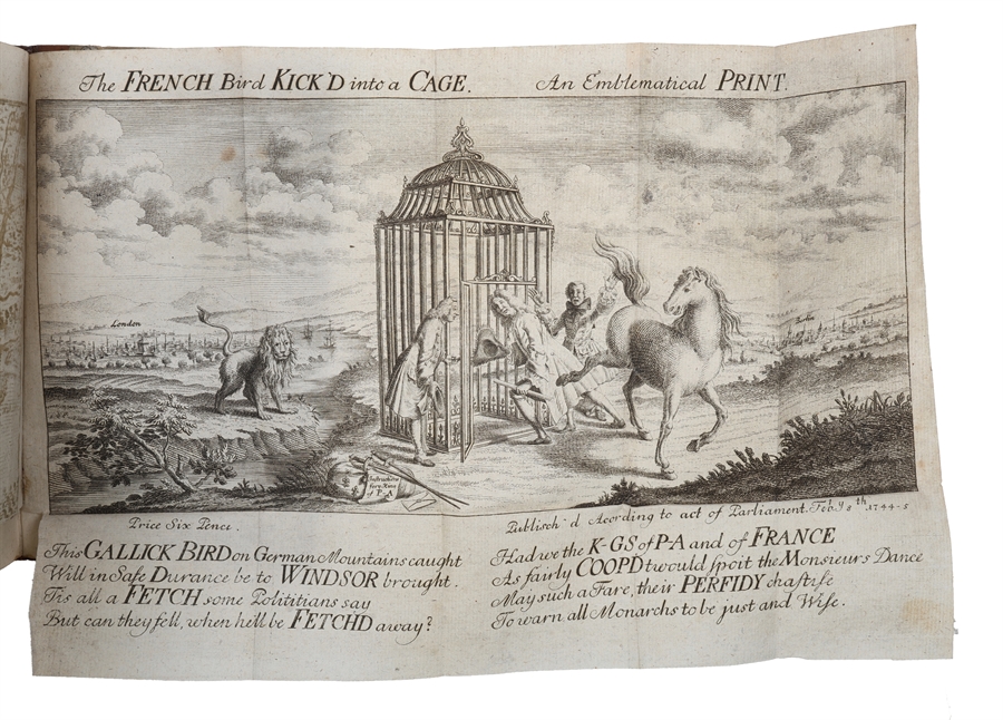 A rare sammelband containing six German “Ben Saddi” chronicles, beginning with the very rare first German translation of Robert Dodsley’s ”The Chronicle of the Kings of England” (London, 1740). Written under the pseudonym Nathan Ben Saddi the work recounts the history of the English monarchy from 1066 to 1603 in the style of the King James Version of the Pentateuch. It was both a literary satire and a commentary on monarchy and politics.