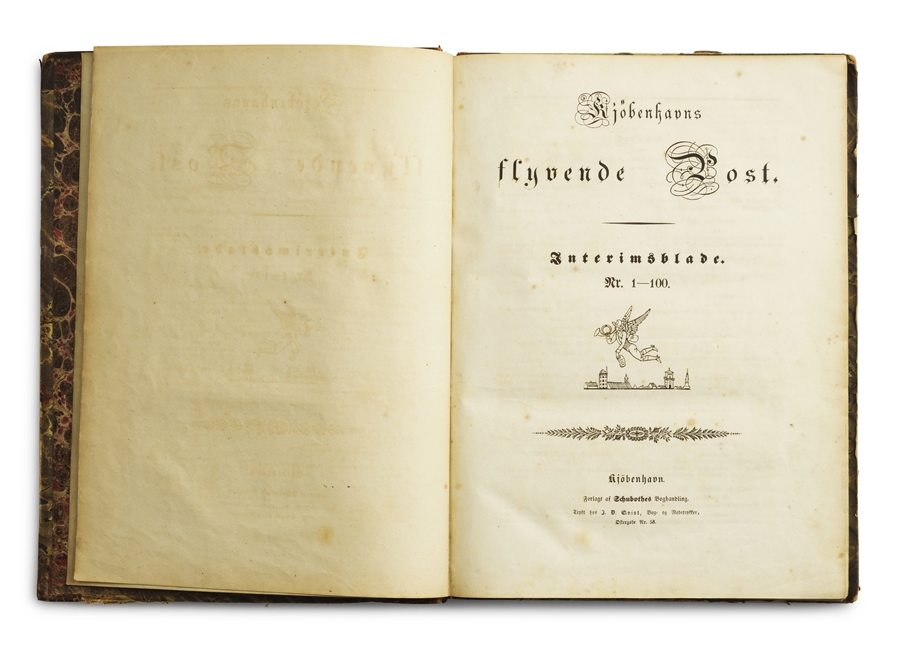 Very rare first printings of Kierkegaard’s first four publications, including the very first publication in Kierkegaard’s own name, which constitutes a true milestone in the history of Kierkegaard’s opus, as does, of course, his very first publication. KIERKEGAARD’S VERY EARLIEST publications are the papers that he publishes in Kjøbenhavns Flyvende Post, before he publishes his famous first book, which is a polemic attack on Hans Christian Andersen. The first and fourth of these earliest periodical publications are arguably the most important, being the very first thing Kierkegaard publishes and the very first publication in Kierkegaard’s own name respectively; but all these four earliest papers (Himmelstrup 1,2,3, and 4) are significant, 2,3, and 4 dealing with contemporary press issues, primarily freedom of press. Danish politics in the 1830’es was dominated by the slow implementation of rules for election for and assembly of the Estates of the Realm. But as they were only advisory, the papers and periodicals were not allowed to publish their opinions. In response to this, a liberal opposition arose around the two polemic papers Kjøbenhavnsposten (The Copenhagen Post) and Fædrelandet (The Fatherland). The first point on the agenda for the Liberals was the fight for freedom of the press and the abolishment of censorship. This fight for freedom of the press was something that found resonance with Copenhagen academics, and it stirred up a lively activity in Copenhagen. In 1835, active Liberals had encouraged King Frederik VI to support freedom of press but had received an answer stating that he alone was able to evaluate what was truly the best for the people and the state. After this answer from the king, the “Society for the Correct Use of the Freedom of press” was founded by moderate liberals and young liberals, and at the end of the year almost 2.300 members had joined. It was in the midst of all this that the 21-year old Søren Kierkegaard, then a student of theology, had his debut, with political-literary articles in Kjøbenhavns flyvende Post, in Interimsbladende, which were published separately. But as opposed to the predominantly liberal views of almost all other contributors, Kierkegaard’s articles expressed distinctly conservative views. His first publication, Også et Forsvar for Qvindens høie Anlæg (Also a Defense of the High Abilities of the Woman) constitutes an unpolished ironic apology for the liberation of women. This article is published in December 1834 and is signed “A.”. As opposed to the following next three articles, this does not deal with freedom of press. Kierkegaard’s three following publications, however, all concern the question of freedom of press and constitute satirical polemics against the two liberal papers Kjøbenhavnsposten and Fædrelandet, against Orla Lehmann, the upcoming star of the liberal youth, and against all liberals in general. These three articles were published in February and April 1836. The two first are signed “B.”, and the third, signed “S. Kierkegaard”, constitutes the very first publication in his own name. As is well known, the names under which Kierkegaard later publishes come to play a significant role in his authorship and represent an extremely thorough and well-thought-out construction. The foundation of this play with the reader is thus laid in the present publications, in which he begins to develop the style for which he later gained worldwide renown. The “names” A and B, under which he here publishes, will most famously be used again in Either- Or, Part one of which consists in “A.’s Papers” and Part Two in “B.’s Papers, Letters to A.” Common for all four of his first publications is the attempt at polemic and satirical power, at literary elegance and at a masterful and ceremonious critique of the prose of the opponent – all dominant traits in his later writings. Kjøbenhavns flyvende Post (The Flying Post of Copenhagen) was one of the most important and most widely read cultural and literary periodicals of the period. It was edited and run by Johan Ludvig Heiberg (1791-1860), arguably the most famous cultural person during the Danish Golden Age. He played a more significant role than any other author or thinker during this period and was the leading character of literature and philosophy in the 19th century. He introduced many German thinkers to Denmark, most importantly Hegel – who Kierkegaard would later oppose –, and he was part of almost all intellectual discussions of the Danish Golden Age. He was also a patron for many leading figures of the era. Interestingly, several people thought that the first of the articles on the freedom of the press was written by Heiberg. This was of dubious merit to Kierkegaard himself, as he was opposed to the circles around Heiberg and the Hegelian environment, but it was still this article – and this miscomprehension – that gave him a claim to fame. Another paper claimed that this “priceless” article had been written by Heiberg himself, who “had written many witty things, but never anything as witty as this.” Also Kierkegaard’s professor of philosophy, Poul Martin Møller, to whom Kierkegaard was very devoted and to whom he dedicated Begrebet Angest (the only person outside of his family that Kierkegaard ever wrote a printed dedication for), loved the article and assumed that Heiberg had written it. “He (Kierkegaard) had a lifelong antipathy toward the press, though he himself published reviews in various papers. His mistrust of the press as a legitimate organ of communication was based on several observations, one of which was that the press was the voice of the masses, rather than that of the individual. He viewed that voice with great skepticism and sarcasm in later years, averring that the crowd... even if technically correct... is wrong by the very fact of being the crowd. The truth can only be stated and pra
