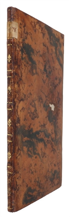 8vo. In contemporary full sprinkled calf with five raised bands and gilt ornamentation to spine. Edges of boards gilt. All edges coloured in red. Old paper-label pasted on to top of spine. A few holes in the leather. Internally very nice and clean, printed on good paper. 24 pp.