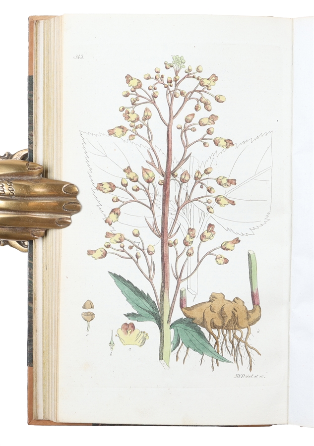 Beautiful set of the first edition of the first Swedish colour-plate book on flowers and plants, often characterized as "The Swedish Sowerby". An 11th (and final) volume was planned to appear later, but as a fire in the printing house (in May 1840) destroyed most of the stock of the last published parts before distribution (54 plates in all), this final unfinished and mostly destroyed 11th volume is hardly ever found together with the 10 volumes that were completed. Lindberg, Swedish Books 1280-1967: 55. Nissen: 2223. Stafleu: 2: 7247. Dal, Med kolorerade figurer: pp. 277-83. Dal, Sveriges zoologiska litteratur: p. 118.