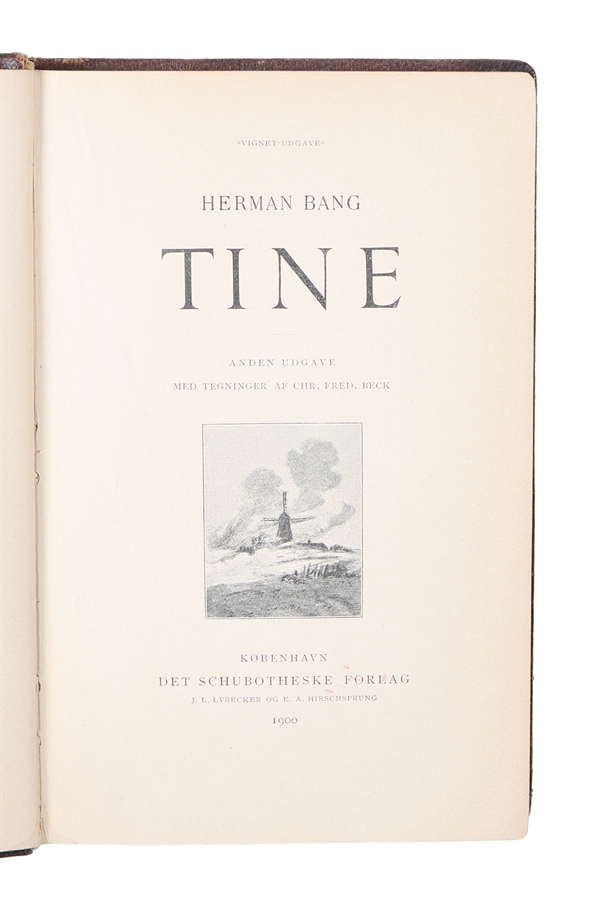 8vo. I sort vatteret forlagsbind med forgyldt snit. Med egenhændig dedikation fra Bang på fribladet: "Harald Witzansky / Herman Bang / Marts 1906. Ryg falmet og med en smule slitage, ellers pænt og nydeligt eksemplar. (14), 274, (2) pp.