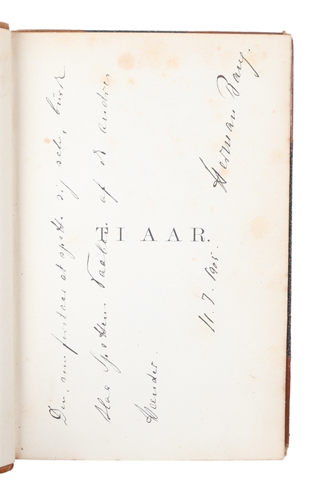 8vo. I et samtidigt halvlæderbind med forfatterens egenhændige dedikation på titelblad: "Den, som forstaar at spotte sig selv, burde slaa Spottens Vaaben af de andres Hænder / 11.7.1905 / Herman Bang.". Forreste fals gået op, indvendig ren og pæn. XVIII,(2),275,(1) pp.