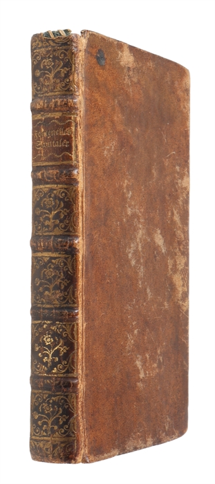 8vo. I samtidigt hellæderbind med forgyldt titel og ornamentik på ryg og rødt snit. Udvendig med en smule slitage, indvendig sporadisk brunplettet. Titel-blad beskåret i nedre margin, uden tab af tekst. Tidligere ejernavne på forsatsblade. (1)-335 pp. (med 14 træsnit af planetbaner, månefaser og andre astrologiske fænomener i teksten).