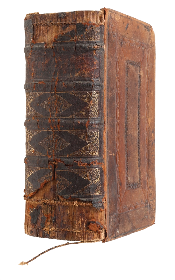 8vo. In a contemporary Cambridge style mirror-binding with five raised bands. Binding defective, upper and lower compartments with loss of leather. Previous owner's names to front free end-paper. Internally nice and clean. 18 ff. 3048 columns, 44 ff., 172 columns. Wanting the frontispiece.