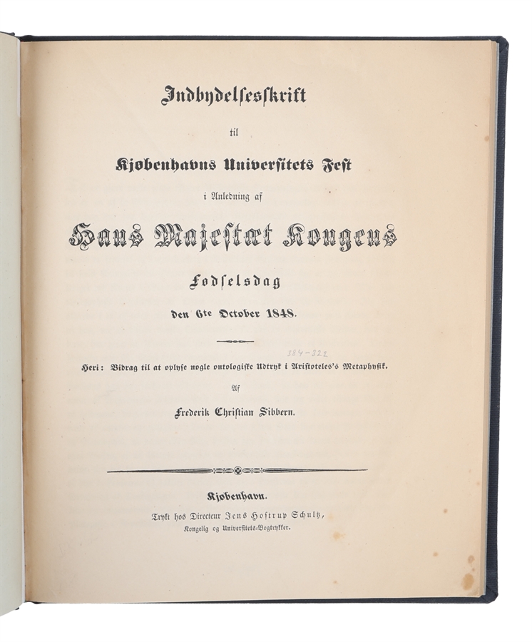 Originaltrykket af Sibberns bidrag i "Indbydelsesskrift til Kjøbenhavns Universitets Fest i Anledning af Hans Majestæt Kongens Fødselsdag den 6te October 1848.