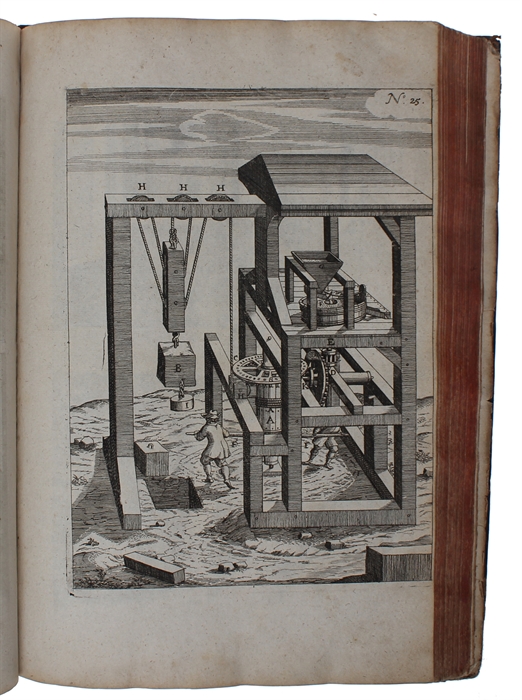 Folio (345 x 240). In contemporary full calf with six raised bands. Extremities with wear. Boards with scratches, front board missing leather in lower margin. Frontiespiece of vol. 1 missing paper in outer margin. A few plates with tears but overall internally fine. (Architectura civilis:) (Frontiespiece), 5 ff. + 43 engraved plates; (Frontiespiece), 5 ff. + 30 engraved plates. (Theatrum Machinarum Novum:) (Frontiespiece), (10), 40 pp. + 153 engraved plates, wanting plate no. 8.