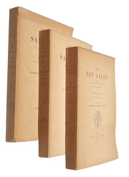 Les San Gallo. Architectes, Peintres, Sculpteurs, Medailleurs XVe et XVIe Siecle. 3 vols. (1. Giuliano et Antonio (L'Ancien) - 2. Antoni da San Gallo (Le jeune). - 3. Florence et les Derniers San Gallo).
