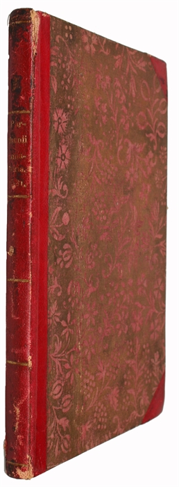 Small 8vo. Bound in a lovely, charming early 19th century red half calf with gilt title and lines to spine and lovely gold and red ornamented "romantic" paper over boards. A bit of wear to spine. Internally a very fine and clean copy. Title-page slightly soiled, and a vague marginal dampstain throughout, on most leaves barely visible. Froben printer's device to title-page, and in a larger version to verso of last leaf. Four large woodcut initials. 76, (44) pp.