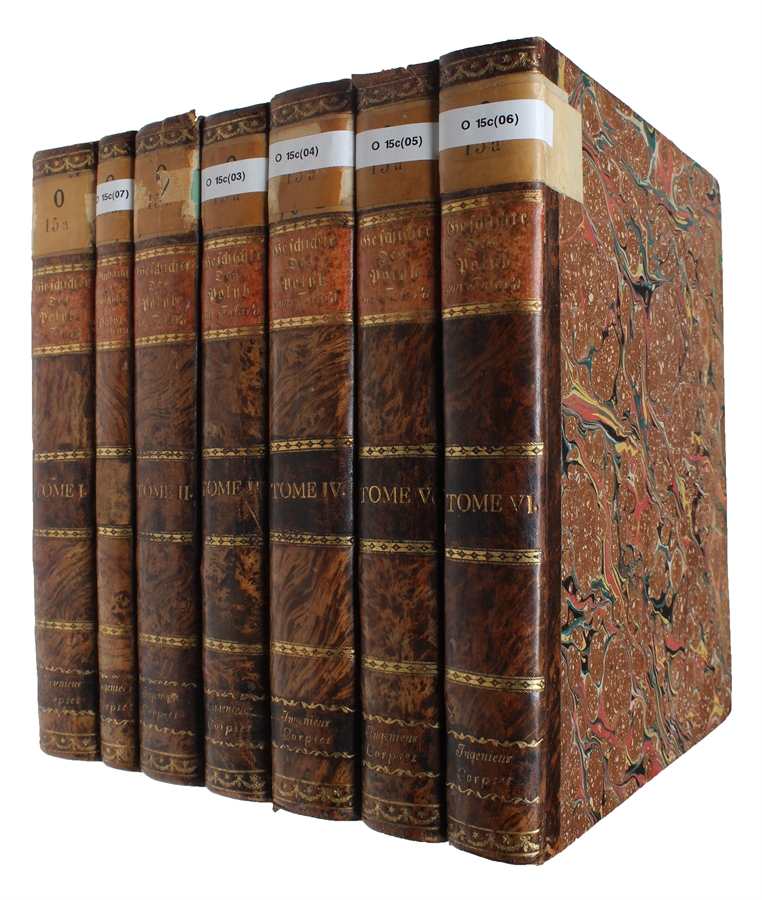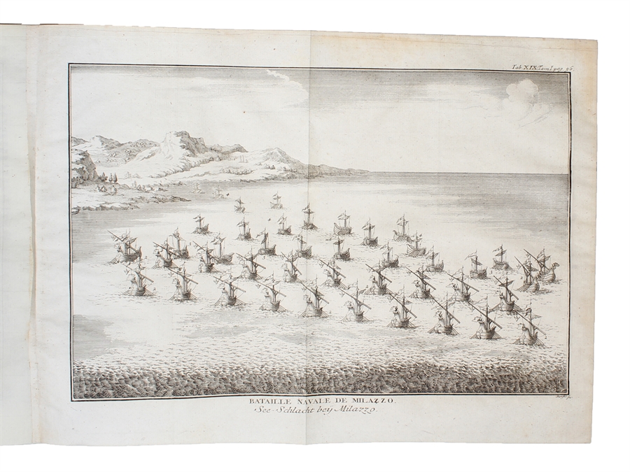 4to. Bound in 7 contemp. uniform hcalf. Gilt spines. Tome-and titlelabels with gilt lettering. A paperlabel pasted on upper part of spines. Small tear to two top of spines. Stamps on title-pages. Engraved portrait as frontispiece, Engraved titlevignettes, fine engraved vignettes in the text and 146 engraved plates (mainly double-page and folded, all called for in the plate-index) and 3 folded engraved maps. Some rather faint, mainly marginal, scattered brownspots.
