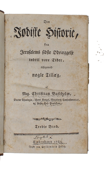 Den Jødiske Historie, fra Verdens Skabelse til Jerusalems sidste Ødelæggelse, med historiske, geographiske, chronologiske og critiske Oplysninger. 3 Bd.