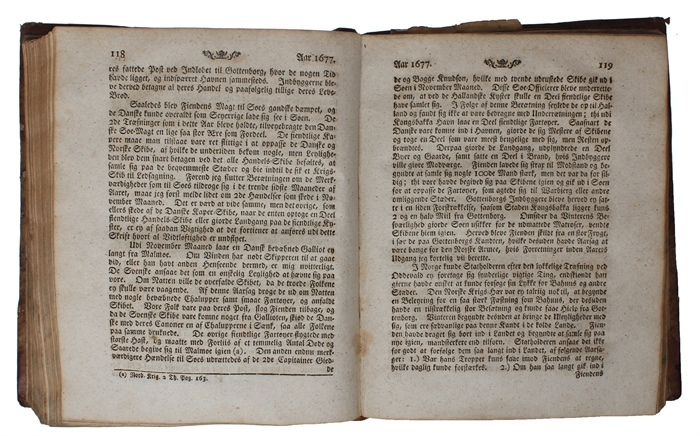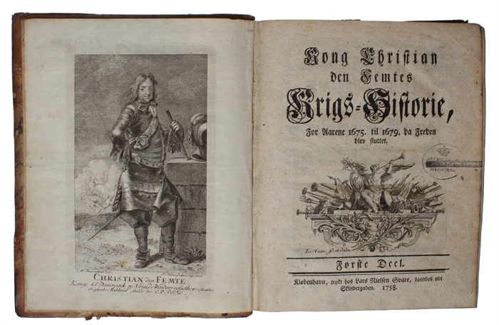 4to. Et samtidigt hldrbd. Forgyldt rygtitel. Ryg med brugsspor. stempel på titelbladet. Kobberstukket frontispiece (Kongen i hel figur, stukket af Haas efter Baurenfreind). (14),330;(12),328,(32) pp.. Med 7 (af 8) kobberstukne foldeplancher, hvoraf 5 er kort og planer. Indvendig ren.