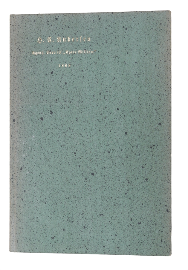 First edition, in splendid condition, with the original printed wrappers, of the second part of Andersen's "Story"-collection, containing first printings of four of his famous fairy-tales. With a lovely, poetical presentation-inscription to Frederikke Larcher, signed "H.C. Andersen", translated as thus: "I put my bouquet on the board of the stage/ you yourself make the impression of a fresh bouquet". Frederikke Larcher was a stage actress, and Andersen might have given the little book as a gift upon her last performance.