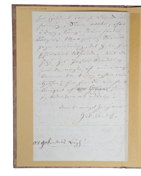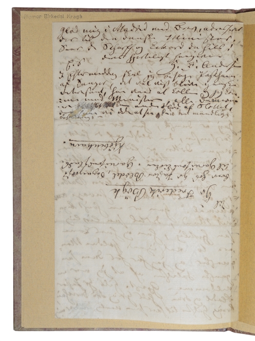 The present letter is of the utmost interest, as it is written in English (in Andersen's own hand!) and also in Latin letters, as opposed the gothic handwriting that Andersen usually uses. Letters and inscriptions in Andersen's Latin hand are of the utmost scarcity. Out of the few known letters in Andersen's hand, we have even fewer letters by him written in English. He made an exception for William Hurton, to whom a few letters have been preserved, demonstrating his reverence for this Scottishman so fascinated by Andersen himself. Almost all of these letters are in institutional holdings, and the present one on private hands is a true scarcity.