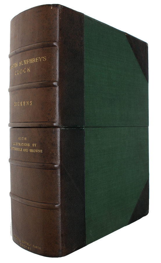 A fine set of first printings of the 20 monthly parts of Dickens' famous short-lived periodical, including the novels "The Old Curiosity Shop" and "Barnaby Rudge". Master Humphrey's Clock was first issued in weekly parts before being collected into monthly issues and finally into book format. Master Humphrey's Clock was one of the first works to appear in weekly as well as monthly installments. Eckel, Pp. 67-69.