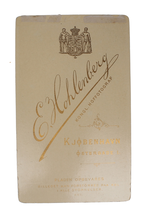 Fotografiet måler 9x5,9 cm og er monteret på pap m. guldkant der måler 5x6,3 cm, på hvilket er trykt for neden: E. Hohlenberg, Kongl. Hoffotograf. Østergade 1, Kjøbenhavn. Fotografiet viser Hamsun i næsten 3/4 profil, med hovedet drejet en smule til højre.
