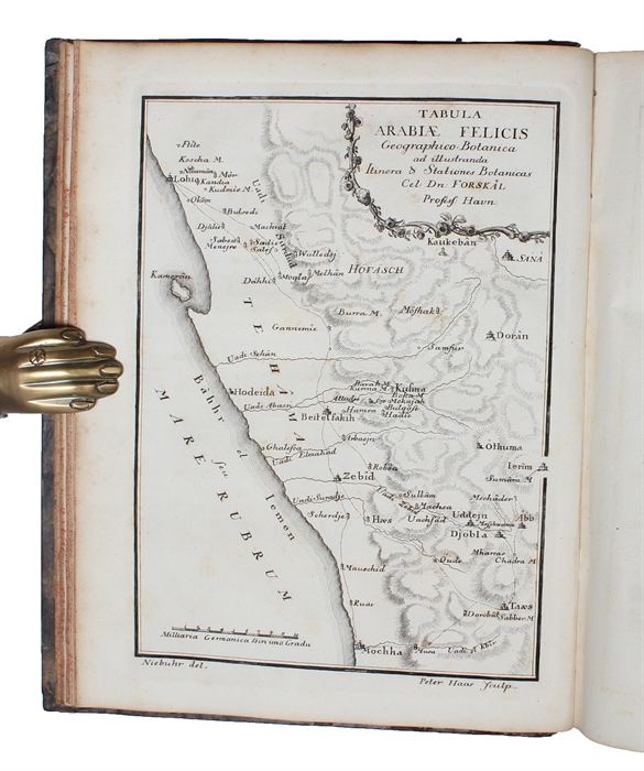 First edition of Forskål's fundamental description of the plants of Yemen and lower Egypt found on the Danish expedition to Arabia. As Forskål died in Jerim it was Carsten Niebuhr, the leader of the expedition and only survivor, who published Forskål's manuscripts. Many botanical species are here described for the first time. Forsskål was one of the most gifted disciples of Linnaeus.