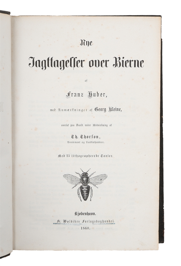 Samt.hldrbd. 528 pp. samt 15 litograf. tavler. Første danske udgave of denne klassiker om biernes biologi og avl.