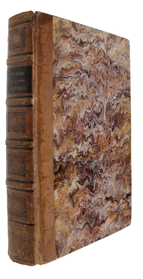 Very rare first edition of the work in which the deciphering of the hieroglyphs was fully presented for the first time. In 1822 Champollion had read his "Lettre a M. Dacier" before the Academie des Inscriptions, and for the first time presented the key to reading hieroglyphs. His monumental work "Précis du système hiéroglyphique" appeared two years later, and in this richly illustrated work he presents his definitive, expanded analysis, and finally corrects the misleading mistakes of the other Egyptologists, counting also Thomas Young.