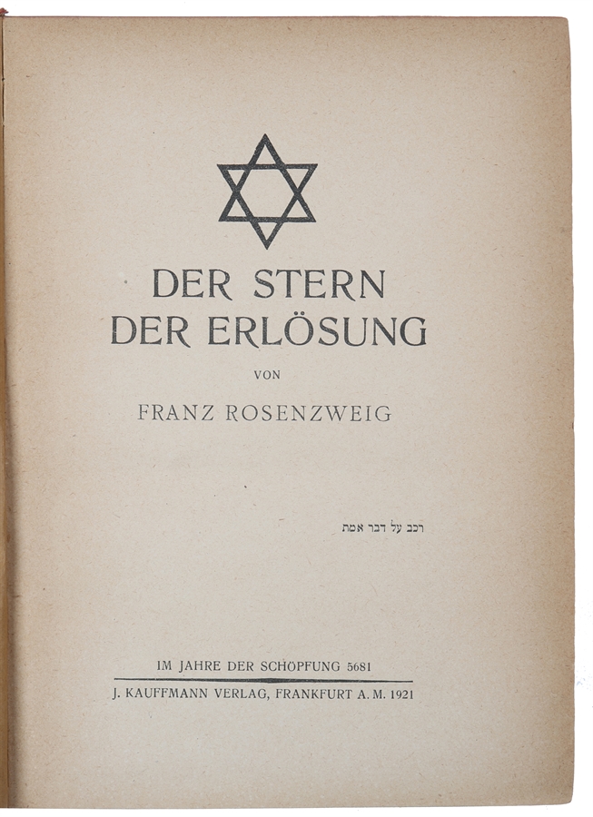 "Der Stern der Erlösung" is usually labeled a work of Jewish philosophy, and Rosenzweig is rightly considered along with Emmanuel Levinas and Martin Buber, his close friend and collaborator, as one of the most significant Jewish philosophers of the 20th century. However, his scope and vision transcend parochial boundaries and should, as we develop a more considered perspective on the last century, earn "Der Stern der Erlösung" a place among its most important works of philosophy.