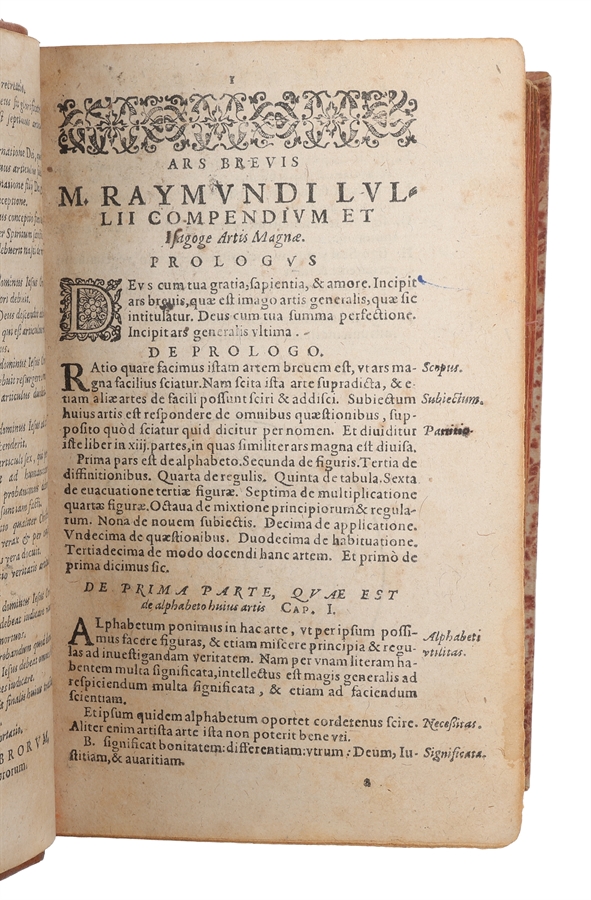 Scarce first edition of this seminal publication, which is practically solely responsible for the spreading of both Lullism and Bruno's mnemonic theories in the 17th century. This publication constitutes the standard work on Lull for more than a century and it directly influenced the most significant thinkers of the following century, e.g. Leibnitz, whose dream of a universal algebra was stimulated by the reading of Lull (and Bruno) in the present publication.
