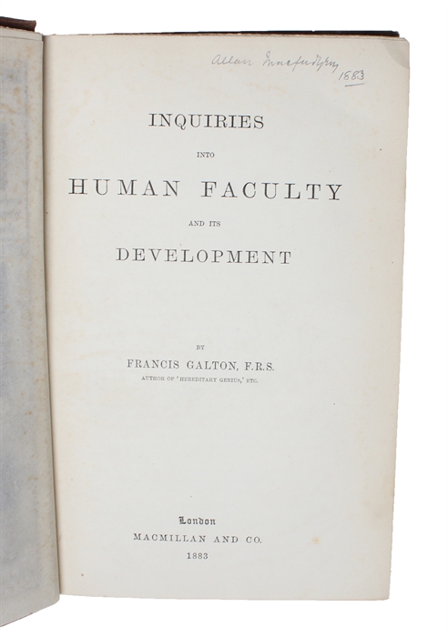 First edition - in the original full cloth - of this milestone in modern supremacy theory and thought. This work constitutes the magnum opus of eugenics, and it is here that Galton, Darwin's cousin, coined the word "eugenics" and initiated the eugenics movement: