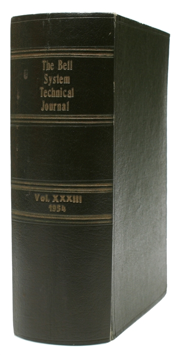 New York, American Telephone and Telegraph Company, 1954. 8vo. The entire volume XXXIII (Part I-II), 1954 of The Bell System Technical Journal bound in a nice full green cloth. Library stamp to free front end-paper and title page. Minor discolouring to extremities. Binding tight, clean and fresh. Also internally very nice and clean. Pp. 1309-1330. [Entire volume: 1400 pp.]