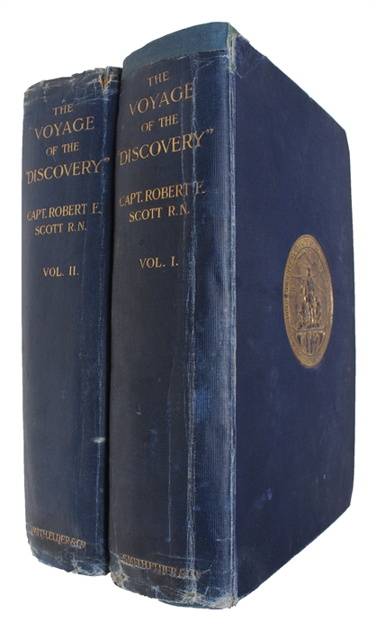 Royal8vo. Uncut in 2 orig. full blue cloth, gold medaillons on covers. Light rubbing to corners and edges. Spineends a bit frayed and with 2 small repairs. Inner hinges neatly strenghtened. Stamp on half-and title-pages.Top-edge gilt. 2 Frontispieces in photogravure. XX,556,XII,508 pp., 260 photographic illustr. on plates, 12 colourplates, panoramas and 5 maps (2 in pockets at ends). Internally clean and fine.