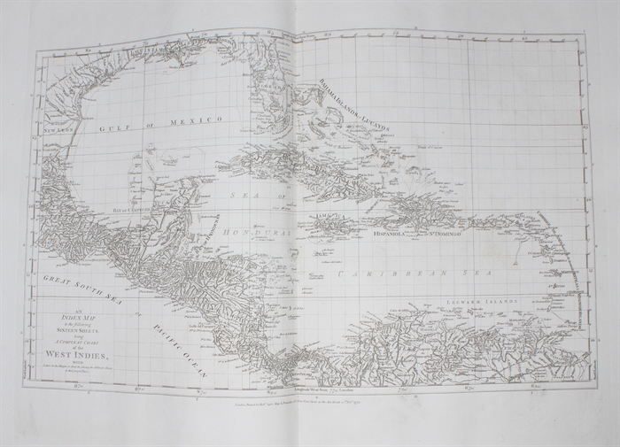 Scarce first French edition - consisting in all the original 39 maps of the 1775 English edition (all (but Antigua) dated 1775) and the engraved double title-page in English, preceded by a French title, preliminary discourse (also in French), and index - of Jeffery's seminal West-India atlas, one of the most important works on the West Indies and the work that we have to thank for the introduction of "Carribean" as the designation that was to become standard on maps.