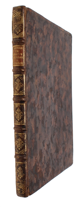 4to. Bound in a very nice full sprinkled calf binding with five raised bands and richly gilt spine. Small paper-label pasted on to top of spine. A very nice copy, printed on good paper. (8), 89 pp. + frontispiece and 3 plates.