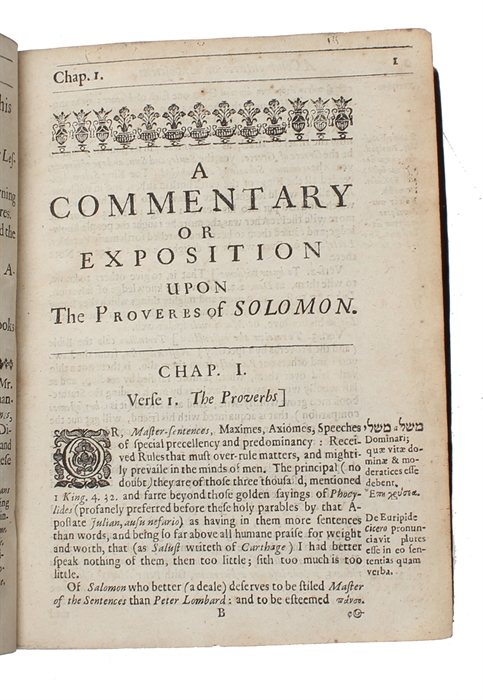 First edition of Trapp’s commentary and interpretation on three books from the Old Testament of the Bible: Proverbs, Ecclesiastes, and the Song of Songs.