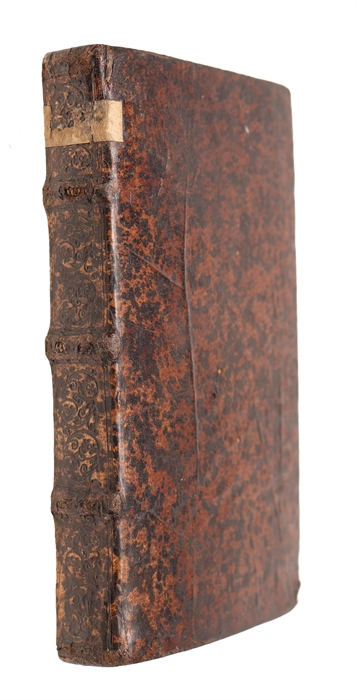 8vo. In contemporary full calf with three raised bands and blindstamped ornamentation to spine. Small paper-label pasted on to top of spine. Scratches to boards and Annotations in contemporary hand to front free end-paper. A few small worm-tracts throughout and a few dampstains. (12), 166 pp.