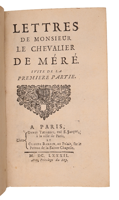 The rare first edition of Méré’s letters to notable personalities of the times such as Ménage, Balzac, Lesdiguières, Mme de Maintenon, Pascal, Ninon de Lenclos and Madeleine de Scudéry. Chevalier de Méré (1607-1684), whose real name was Antoine Gombaud, was a French writer and thinker. De Méré was known for his contributions to literature, particularly in the of moral philosophy and social commentary. He is perhaps best remembered for his participation in the intellectual circles of his time, where he engaged in discussions and correspondences of which this work is a fine testimony. De Méré's writings, especially the present, offer insights into the social and cultural milieu of 17th-century France.