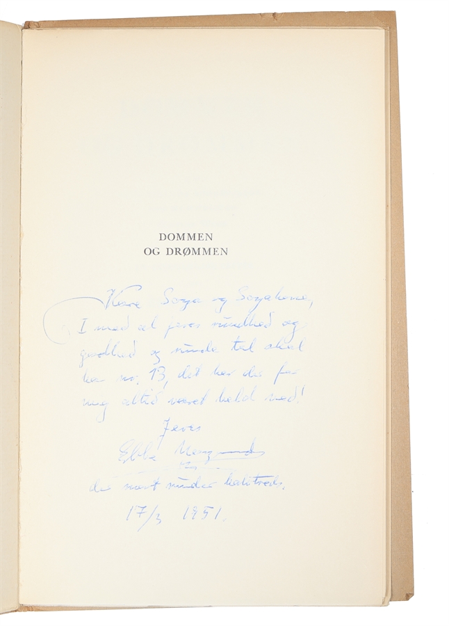 Nydeligt eksemplar med dedikation fra Neergaard til forfatteren C.E. Soya (1896-1983) og hustru ('Soyakone'). C.E. Soya var stifter af Gustav Wied Selskabet.