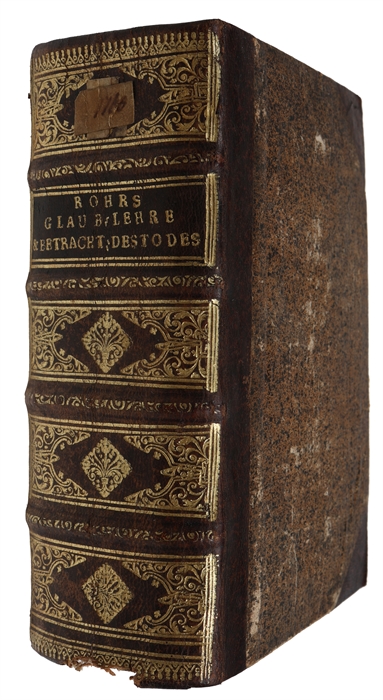 First edition of these two religious works by Rohr. The first being on how religious or doctrinal teachings can contribute to achieving happiness and well-being, the second being on the contemplation of Death. Julio Bernhard von Rohr (1688–1742) was German writer and scholar known for his works on philosophy, spirituality, and practical guidance for living a content and virtuous life. He held the title of "Land-Cammer-Rath" (Land Chamber Counselor) in the service of the High-Princely Saxon court in Merseburg. He studied law at Leipzig University and also attended scientific lectures.