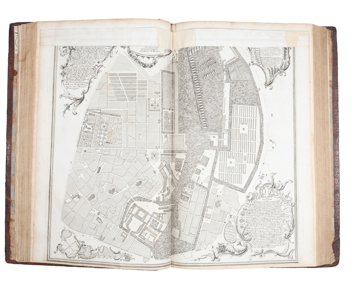 Engraved frontispiece, (10), 96 pp. + 120 engraved plates pp; (2), 267 pp. + 161 engraved plates. Fully complete with the engraved frontispiece and all 281 full-page engraved plates (a few folded) of prospects, designs and drawings.