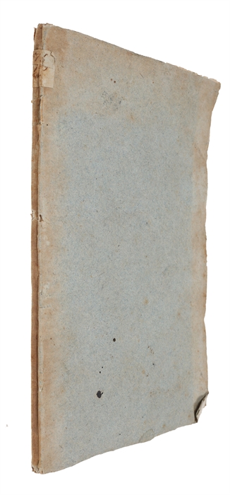8vo. Uncut in the original blank wrappers. Small paper-label pasted on to top of spine. Wrappers with a few tears, paper creased. Internally nice and clean. 76, (4) pp.