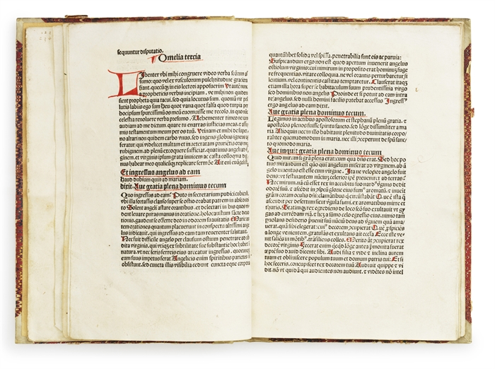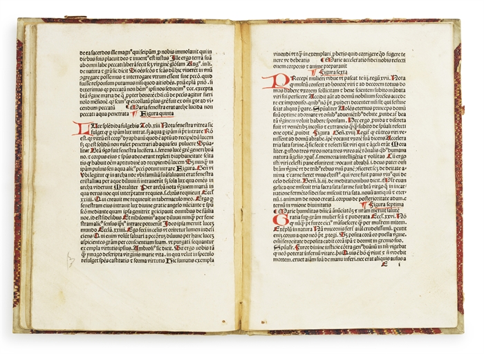 Second - being the first illustrated - edition of Bernard of Clairvaux’s seminal work on the Virgin Mary, her virtues, her role in salvation and her theological significance. It is structured as a commentary on the passage from the Gospel of Luke (1:26) where the angel Gabriel announces the Incarnation to Mary. Bernard was a produtive writer on various aspects of the Bible and Christianity. As a devoted Mariologist, he emphasized Mary's central role in Christian theology and preached effectively on Marian devotions, making the present publication one of the most representative and influential of all his works. It was pivotal in shaping Medieval and Renaissance Marian devotion. Antwerp rapidly emerged as a dominant center for illustrated books in the late 15th century, with Gerard Leeu, the printer of the present work, at the forefront of this movement. He was among the most prolific printers of his time, using over 850 different woodblocks across his works: The present work has a most fascinating provenance. The earliest recorded ownership of this book places it in the Abbey of the Prémontrés of Berne, located near Heusden in the Netherlands. It was most likely placed in this library immediately or shortly after printing, judging from the inscription on the title-page. The Abbey of Prémontré was among the monasteries suppressed after the French Revolution and it was demolished in 1790. BM 15th century IX, p. 193 OCLC only listS one copy in the US (Cambridge MA, Harvard University, Houghton Library)