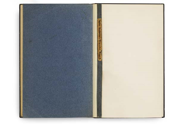 The copy is on fine, bright white vellum-paper (!), uncut, and bound with the original back-strip with the original printed title-label, preserving all of the printed text and with blank blue wrappers of the exact same paper as the back-strip. To our knowledge, The Concept of Anxiety did not appear in blue blank wrappers. It did, however, appear in the characteristic blue paper binding. The wrappers here bound in, however, do not match this paper exactly.