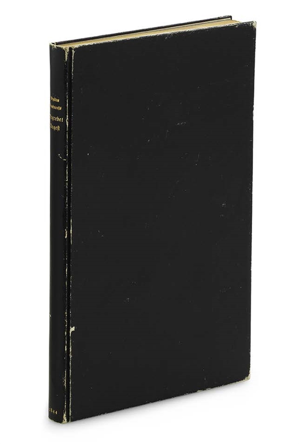 8vo. (8), 184 pp. Bound in a black glitted full paper binding mimicking Kierkegaard’s gift-bindings. With Gothic gilt lettering and printing year to spine. Top edge gilt, otherwise uncut. Bound by Anker Kyster’s Eftf. 1958, more specifically Bent Andree, with his name in pencil under the book-binder stamp on front free end-paper. A bit of wear to extremities. One leaf loose.