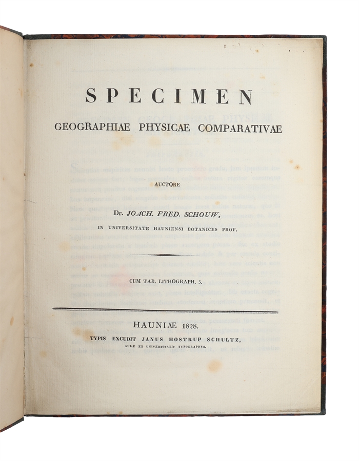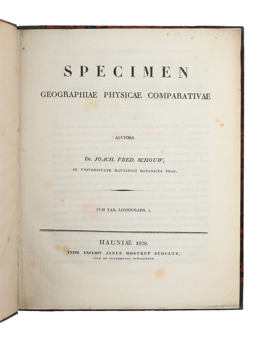 First edition of Schouw’s of a part of his lectures, in which he compares the Alps, the Pyrenees, and the mountains of Scandinavia as an illustration of how the Earth’s surface should be divided according to natural conditions, not political ones.