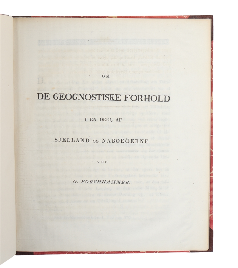 First edition of Forchhammer's important work where the Zealand "chalk" is examined - in Faxe, on Møn, etc. - and the rock types are differentiated and classified, including the now-famous layer containing the fish clay.