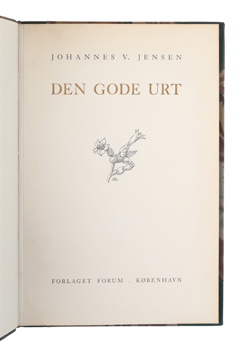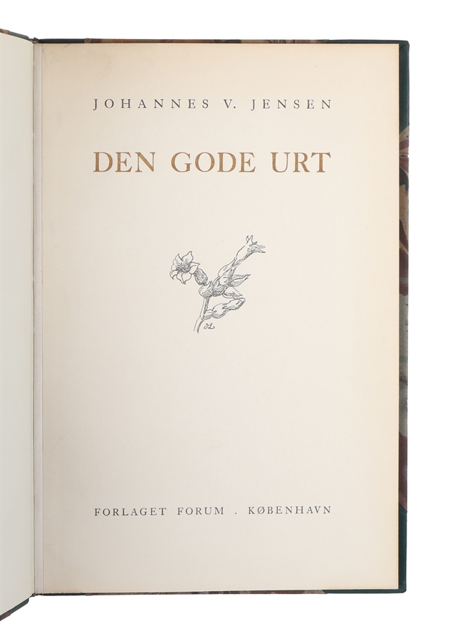 8vo. Indbundet med de originale omslag i et lidt senere grønt halvlæderbind med forgyldt titel på forperm. Exlibris på indersiden af forperm. Med egenhændig dedikation fra forfatteren på smudstitelbladet: "Erik Fogh / Johannes V. Jensen / 30. Jan. 48." Ren og pæn indvendig.