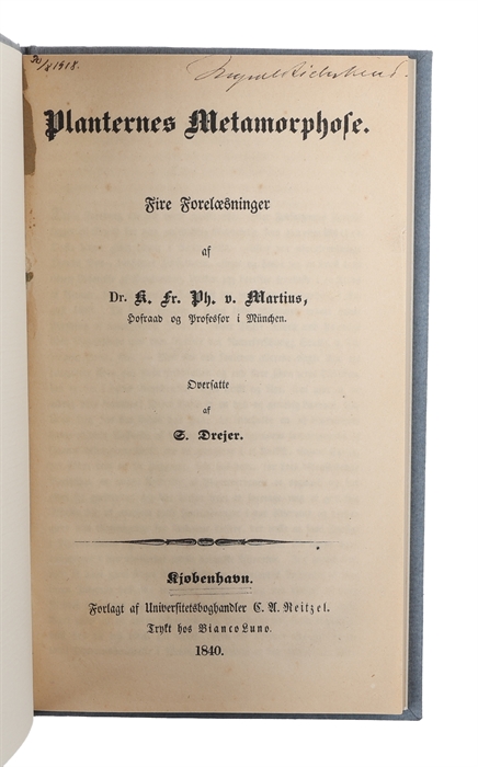 First Danish translation of Martius' Metamorphosis of Plants. Martius is famous for outlining the modern classification of palms and prepared the first maps of palm biogeography.