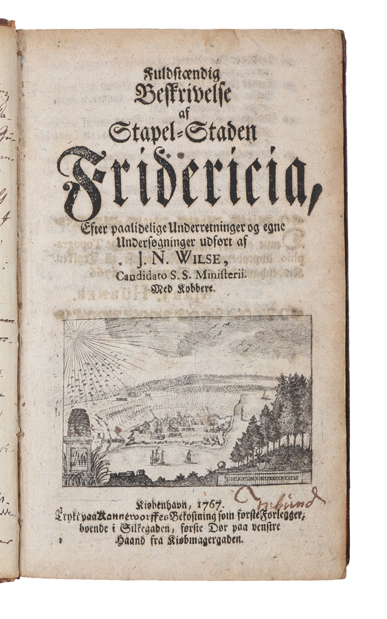 Rare first edition of the first description of Fredericia.  Biblioteca Danica II, 704.