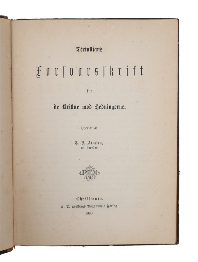Tertullians Forsvarsskrift for de Kristne mod Hedningerne. Oversat af C. J. Arnesen.