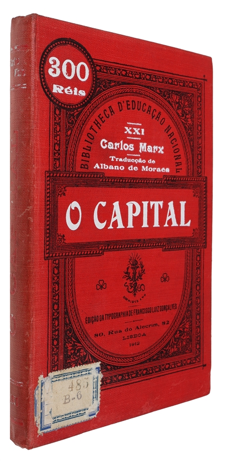 The exceedingly scarce first Portuguese edition of the most important abridged version of Marx's Capital ever to have appeared, published fifty-six years before the first full Portuguese (but published in Brazil) translation and whole sixy-two years before the first full translation published in Portugal. Curiously, two translations of the present work were made 1912 but the present translation seems to have priority (see Bastien, "Readings and Translations of Karl Marx in Portugal"). After the 1933 rise of Salazar's dictatorial Estado Novo regime, suppression of the relatively newly founded Communist party grew. Members were arrested, tortured, and executed and many were sent to the Tarrafal concentration camp in the Cape Verde Islands. Communist literature suffered an equally repressive fate, hence the rarity of the present work. Marxism and especially Marxist writing caught on comparatively late in Portugal: "As for the Socialist Party - supposed to be the main expression of Marxism -, it revealed itself unable to stimulate effective theoretical and doctrinal efforts. Its existence was an example of ambiguity and inconsequence. Its political programme went on mixing Marxian elements, associationist tradition and positivist thinking. Its strategy balanced continuously between an alliance with republican politicians and the maintenance of political autonomy. Its tatics balanced between electoral abstencionism and an involvement in election processes, that never led it to a relevant position in parliament. Even its international relations showed a lasting ambiguity: it had been created according to the instructions of the Marxist majority at the Hague Congress, when most of its members tended to support political abstencionism. When the formation of the Second lnternacional was taking place in Paris in 1889 Portuguese socialists tried to join the Marxist congress, after being present at the possibilist congress. In 1920 they decided to join the Third lnternacional (what was not accomplished), at the same time that an internal reformist turn was taking place." (Bastien, "Readings and Translations of Karl Marx in Portugal"). "The epitome, here translated, was published in Paris, in 1883, by Gabriel Deville, possibly the most brilliant writer among the French Marxians. It is the most successful attempt yet made to popularize Marx's scientific economics. It is by no means free from difficulties, for the subject is essentially a complex and difficult subject, but there are no difficulties that reasonable attention and patience will not enable the average reader to overcome. There is no attempt at originality. The very words in most cases are Marx's own words, and Capital is followed so closely that the first twenty-five chapters correspond in subject and treatment with the first twenty-five chapters of Capital. Chapter XXVI corresponds in the main with Chapter XXVI of Capital, but also contains portions of chapter XXX. The last three chapters-XXVII, XXVIII, and XXIX-correspond to the last three chapters-XXXI, XXXII, and XXXIII-of Capital." (ROBERT RIVES LA MONTE, Intruductory Note to the 1899 English translation). Capital de Marx also had a Portuguese edition at this time, or better, two different editions, both in 1912, but only in translation of the survey of Book I published in France by Gabriel Deville in 1883 (Marx, 1912a and Marx, 1912b). This version omitted material dealt with in at least four chapters of the original text and was not particularly appreciated by Engels. It was a simplified text, aimed at supporting the training of socialist militants and that made it possible for them to have access, indirect, to the work of Marx. The other summaries and anthologies of Capital, which, with a purpose similar to that of Deville, circulated in Europe during this period or ignored in Portugal, as was the case with Carlo Cafiero, or were only occasionally mentioned, as was the case with Paul Lafargue and Karl Kautsky, in its French versions. OCLC list two copies, both in the US.
