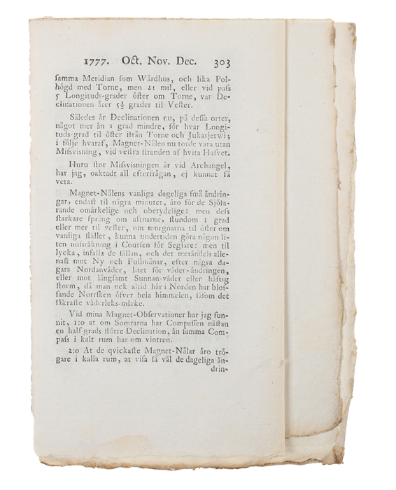 8vo. As extracted from "Kungl. Svenska vetenskapsakademiens handlingar", uncut unopened. Fine and clean. Pp. 304-309.
